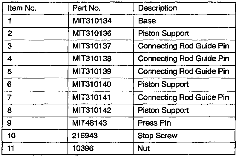 (7) Remove the piston assembly from the base. Remove the guide pin and press pin from the assembly.