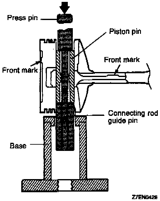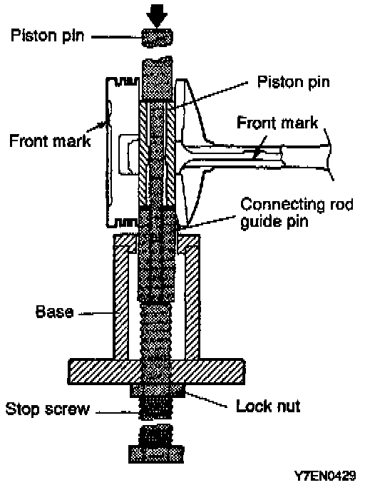 (6) Press the piston pin through the connecting rod until the guide pin contacts the stop screw.