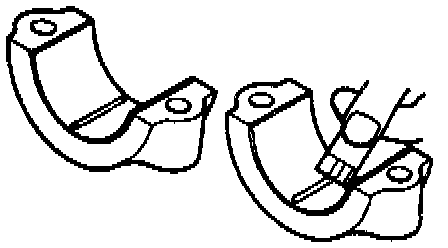 (1) Verifying the mark made during disassembly, install the bearing cap to the connecting rod. If the connecting rod is new with no index mark, make sure that the bearing locking notches come on the same side as shown.