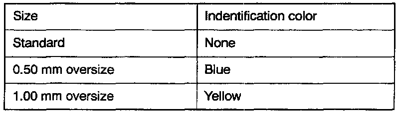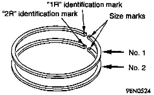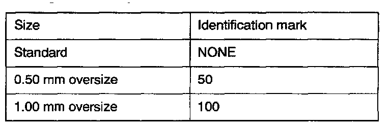 3. The following size marks are embossed on the piston rinds to identify the different sizes.