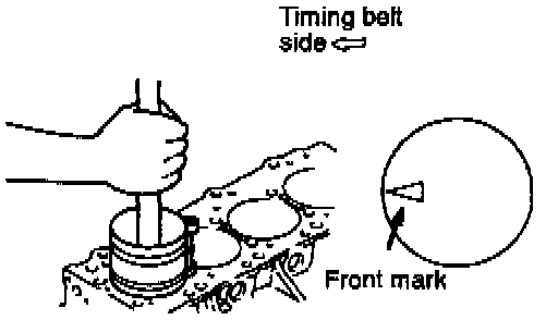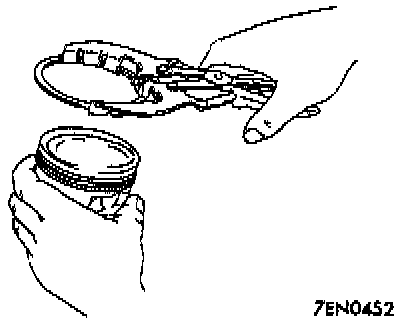 (1) Liberally coat engine oil on the circumference of the piston, piston ring, and oil ring.