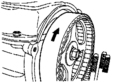 (1) Make a mark on the back of the timing belt indicating the direction of rotation so it may be reassembled in the same direction if it is to be reused.