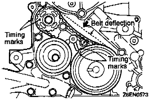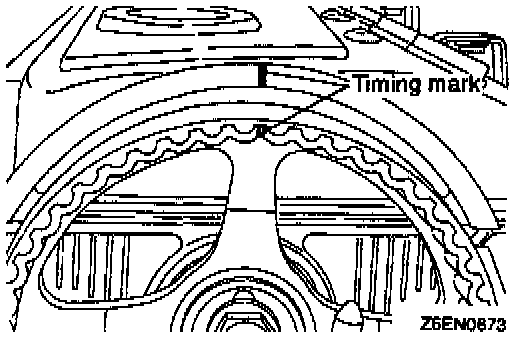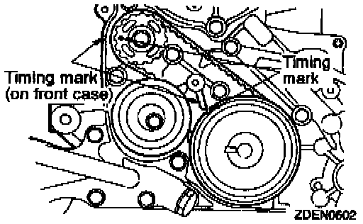 (5) Check to ensure that timing marks on sprockets and front case are in alignment.