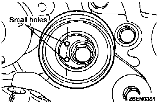 (1) Install the tensioner pulley in such direction that its two small holes are arranged vertically.