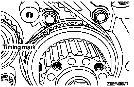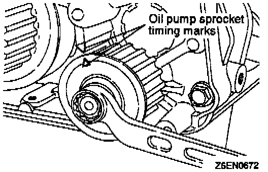 (4) Align the timing mark on oil pump sprocket with its mating mark.