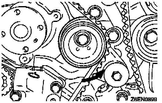(1) Check that the timing belt tensioner and have been installed in position.