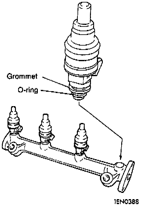 (2) Install injector top end into fuel rail. Be careful not to damage O-ring during installation.