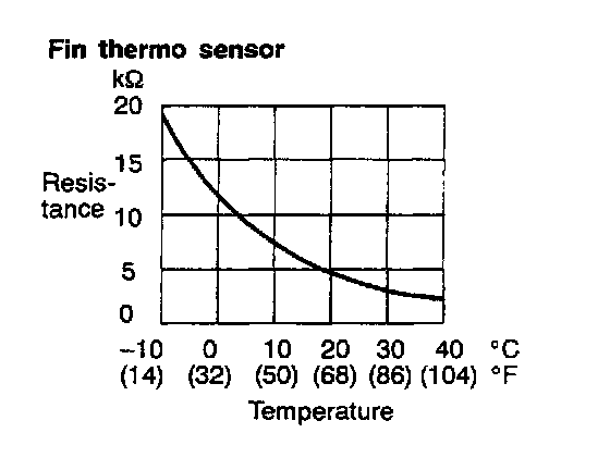 When the resistance value between the sensor terminals is measured under two or more temperature conditions, the resistance value should be close to the values shown in the graph.