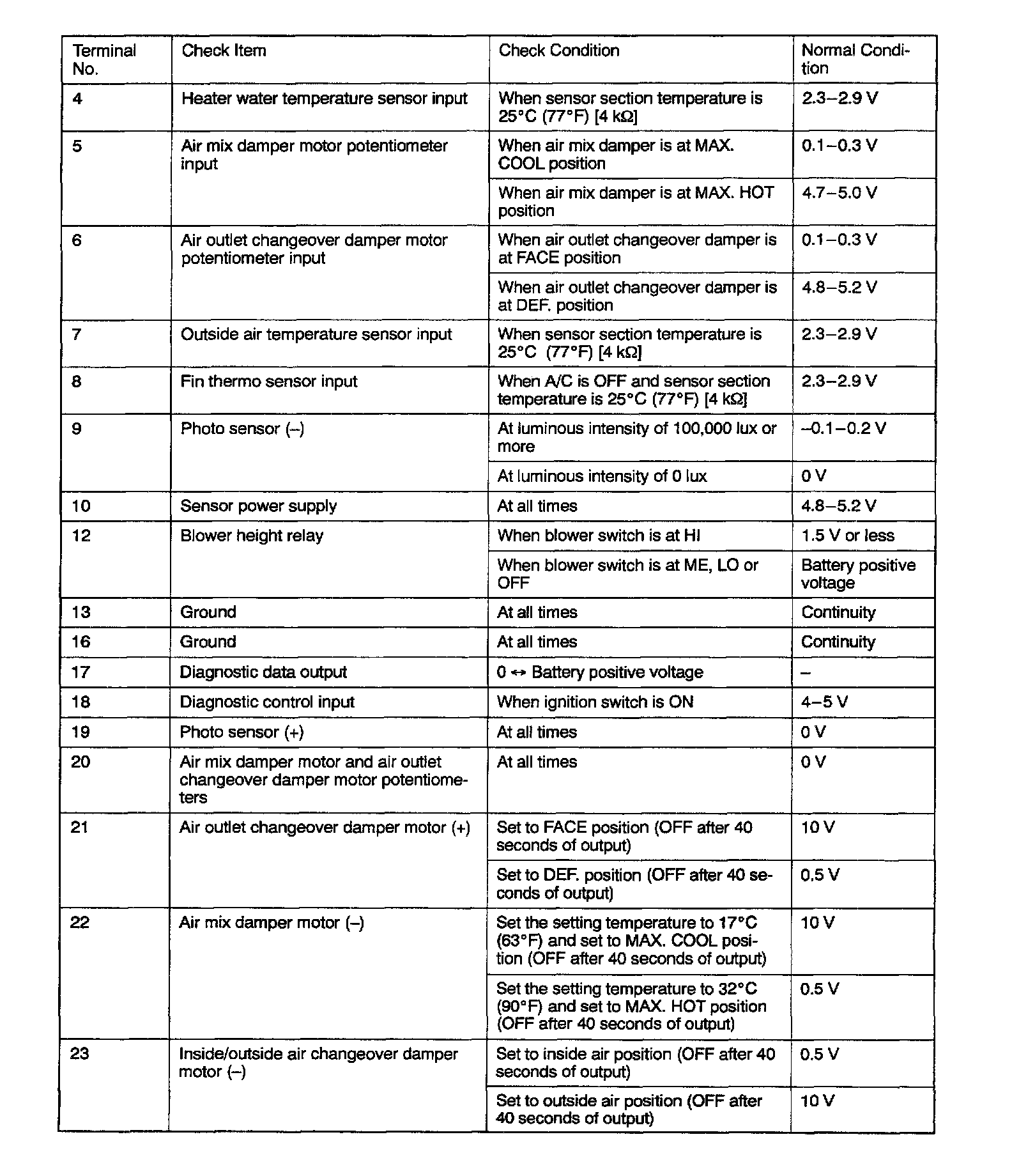 Pinout Values and Diagnostic Parameters
