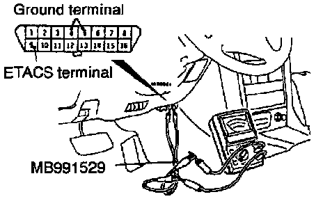 1. Use the special tool to connect a voltmeter between the ground terminal and the ETACS terminal of data link connector.