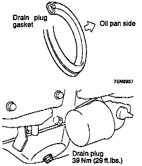 NOTE: Install the drain plug gasket so it faces in the direction shown in the illustration.