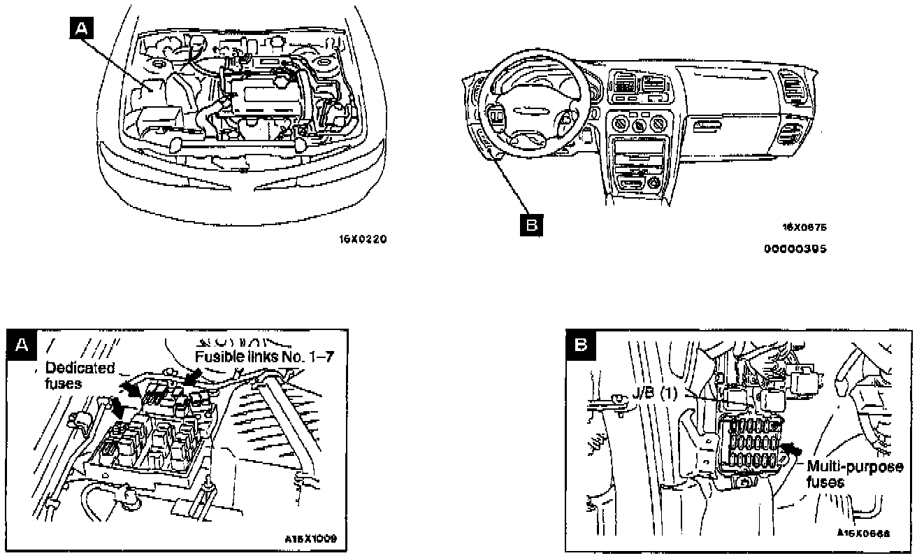 Fusible Link And Fuse Location Overall View And Views A - B: