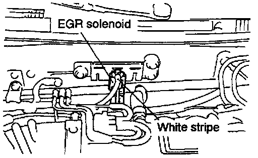 1. Disconnect the vacuum hose (white stripe) from the EGR solenoid and then connect a hand vacuum pump via the three-way terminal.