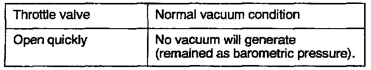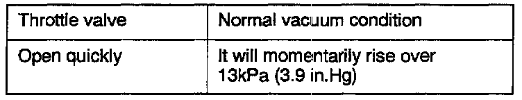 2. Regarding the engine in cold and hot conditions, check the condition of vacuum when engine rpm is increase by opening the throttle valve quickly.