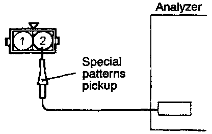 1. Connect the analyzer special patterns pickup to ECM terminal 1 to analyze the No.1 cylinder, connection terminal 2 to analyze the No. 3 cylinder, connection terminal 14 to analyze the No. 2 cylinder and connection terminal 15 to analyze the No. 4 respectively.