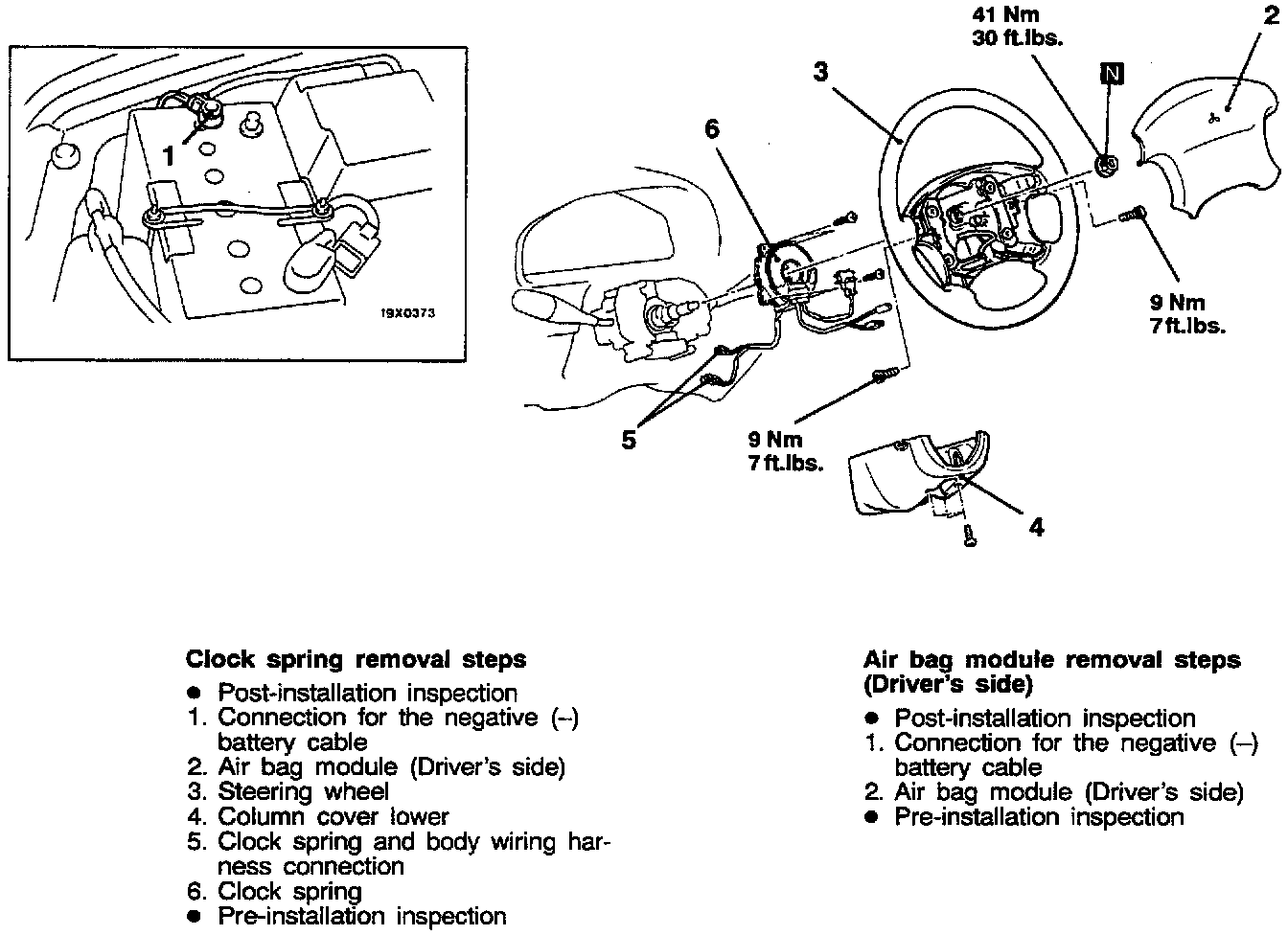 CAUTION:1. Never attempt to disassemble or repair the air bag module or clock spring. If faulty, replace it.