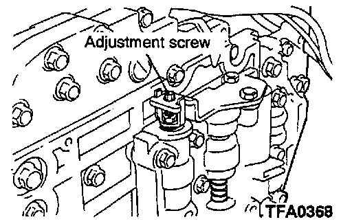 CAUTION: The adjustment should be made at an oil temperature of 70 - 80°C (158 - 176°F). If the adjustment is made at an oil temperature that is too high, the line pressure will decrease during idling, with the result that a correct adjustment cannot be made.
