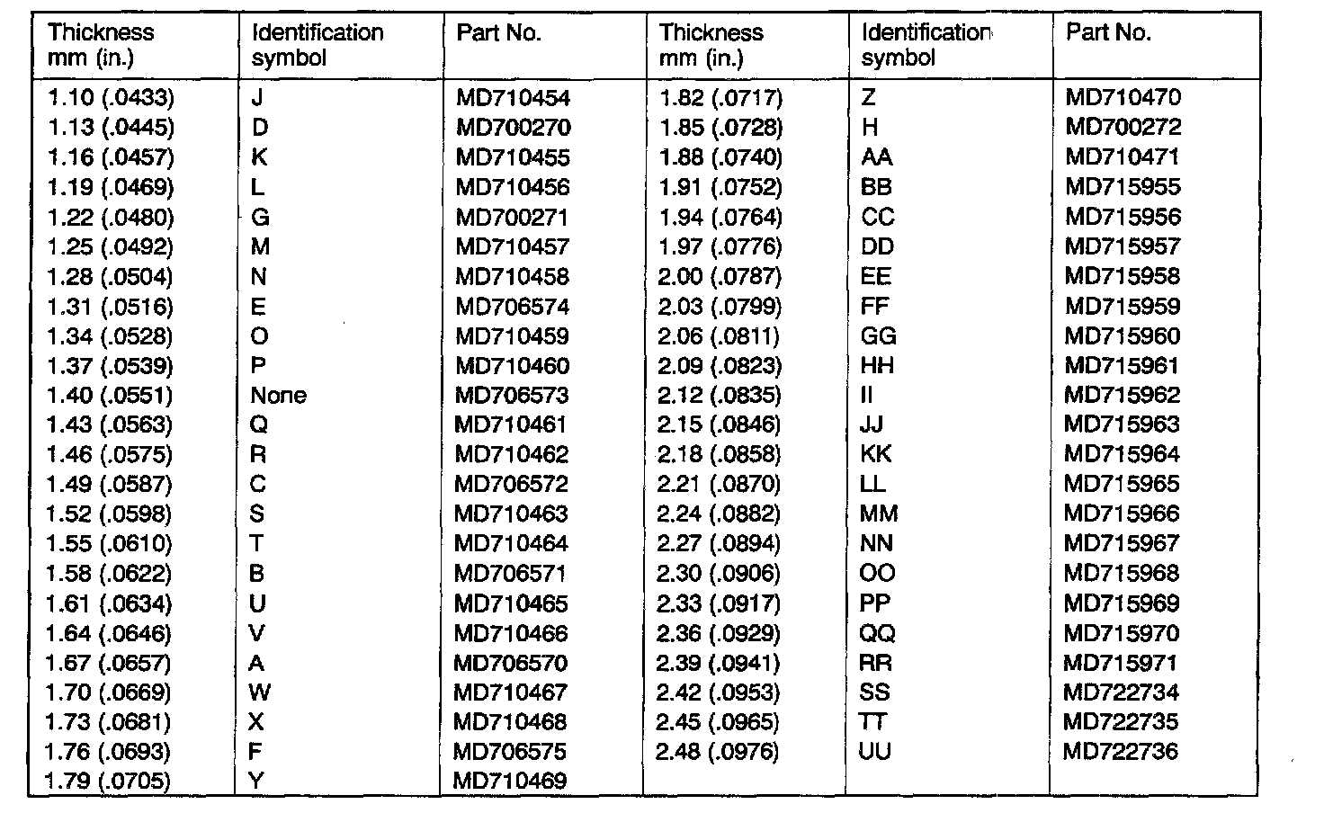 0.08 - 0.13 mm (0.0031 - 0.0051 inch)