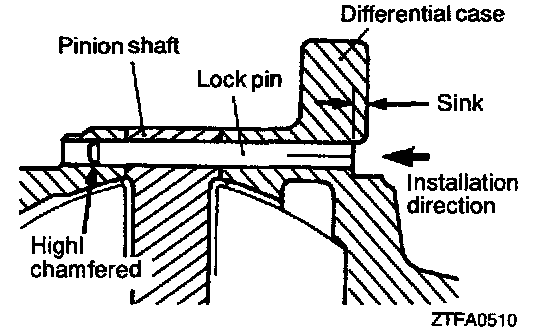 CAUTION: The lock pin should be lower than the differential case flange surface.