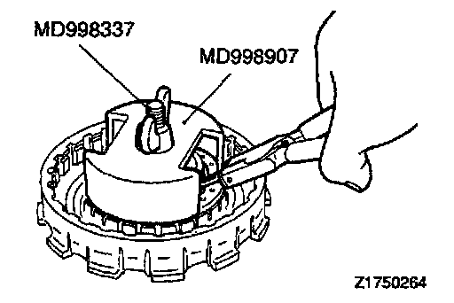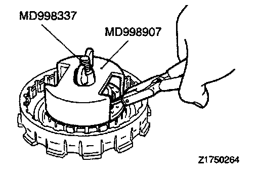 1. Compress the return spring with the special tool.