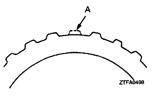 1. Install the clutch reaction plate with their missing tooth portions (A in the illustration) in alignment.