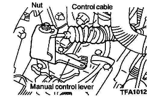 2. Loosen the control cable to manual control lever coupling nut to free the cable and lever.
