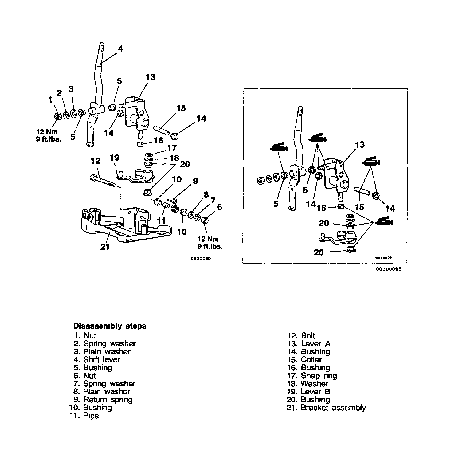 3. Check that there is no play in the shift lever in direction (c) when lever A is fixed in place.