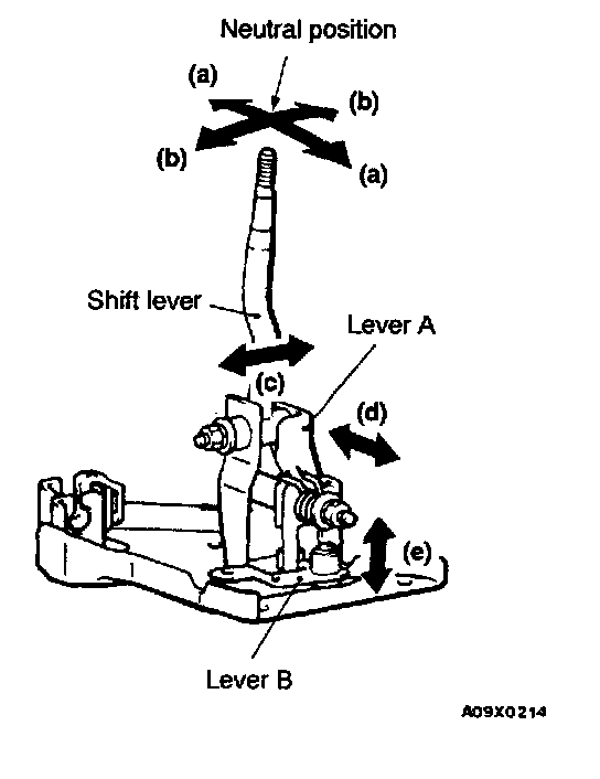 2. Check that the shift lever returns smoothly to the neutral position by the action of the return spring when it is moved in the select direction (direction (b)).