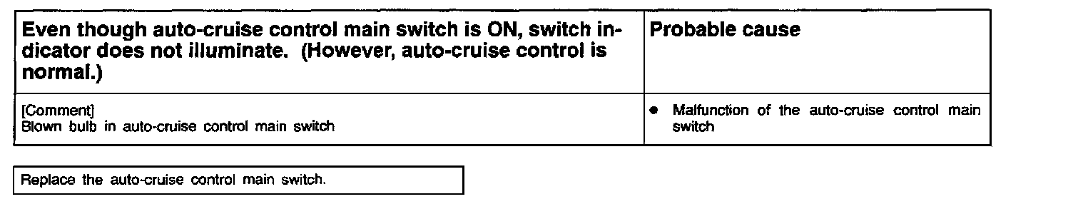 11. Cruise Main Switch Does Not Illuminate
