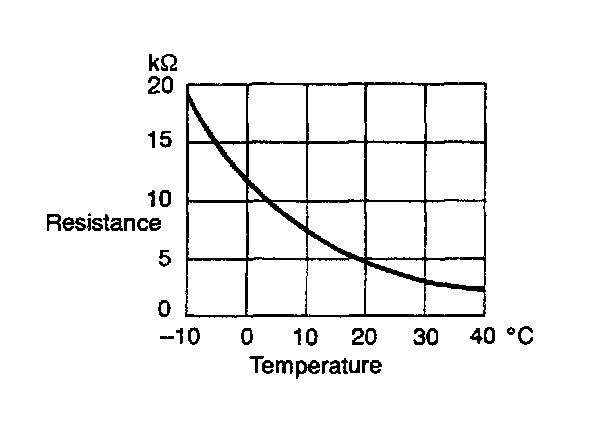 When the resistance value between the sensor terminals is measured under two or more temperature conditions, the resistance value should be close to the values shown in the graph.