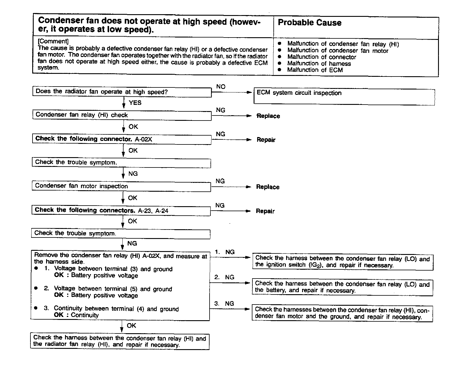 15. Condenser Fan Does Not Operate At High Speed