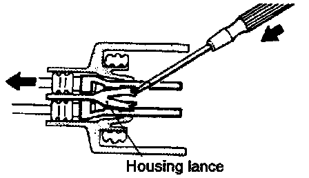Connectors which are loose shall be rectified by removing the female terminal from connector housing and raising its lance to establish a more secure engagement. Removal of connector terminal used for MFI and ELC-4 A/T control circuit shall be done in the following manner.