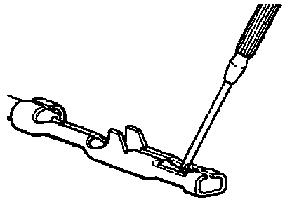 3. Press contact point of male terminal down by holding a screwdriver [1.4 mm (0.06 in.) width] in a manner as shown in the figure.