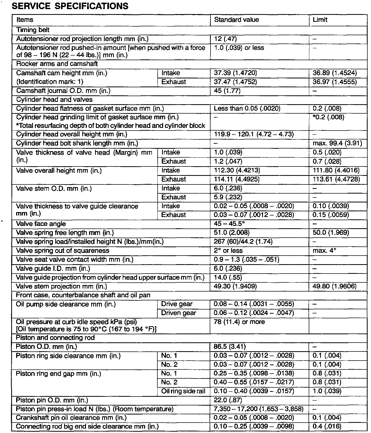 Engine-Overhaul Specifications
