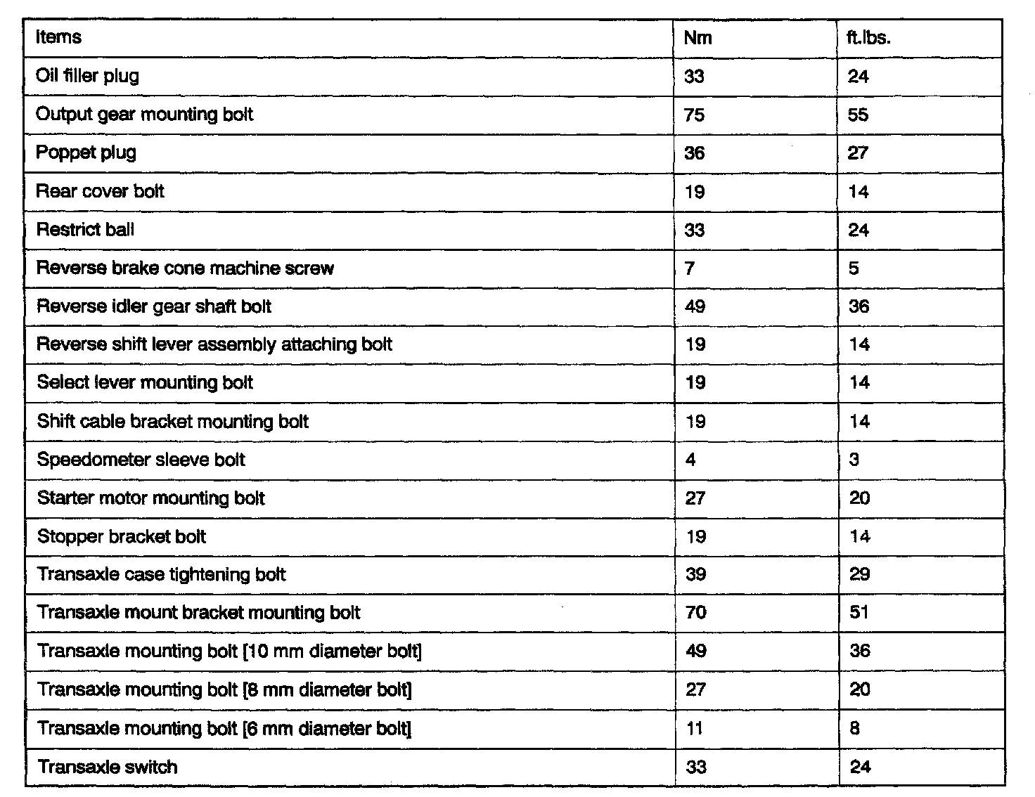 F5M31 5-spd M/T, Transaxle Torque:
