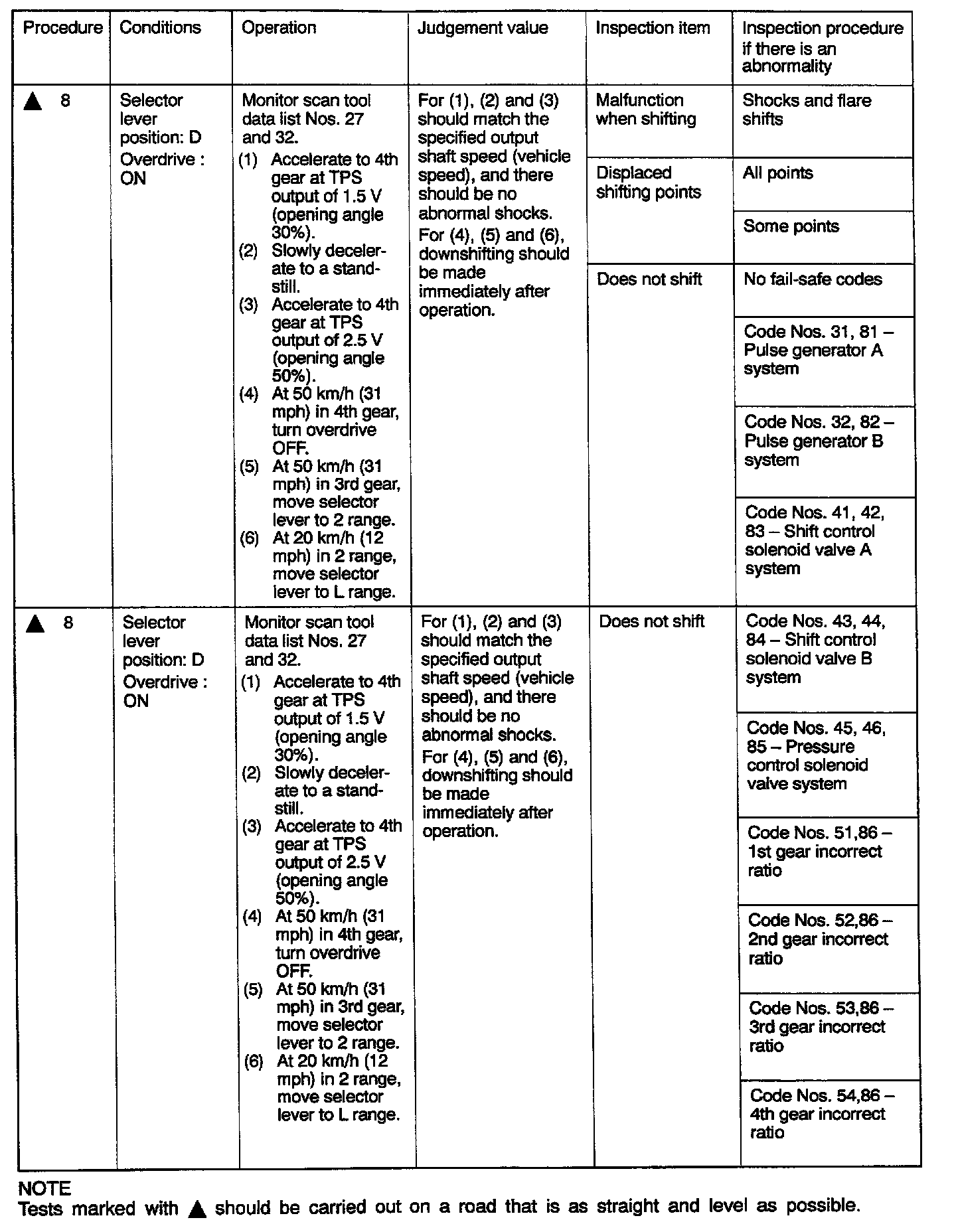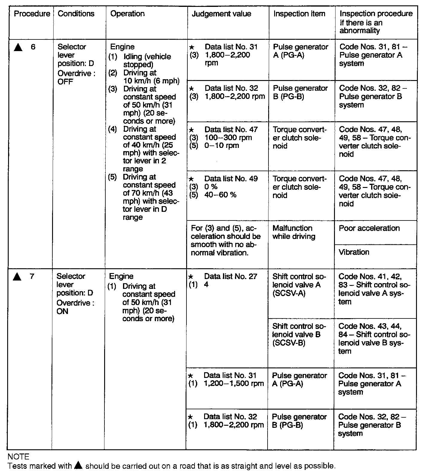 Road Test Diagnostic Procedures