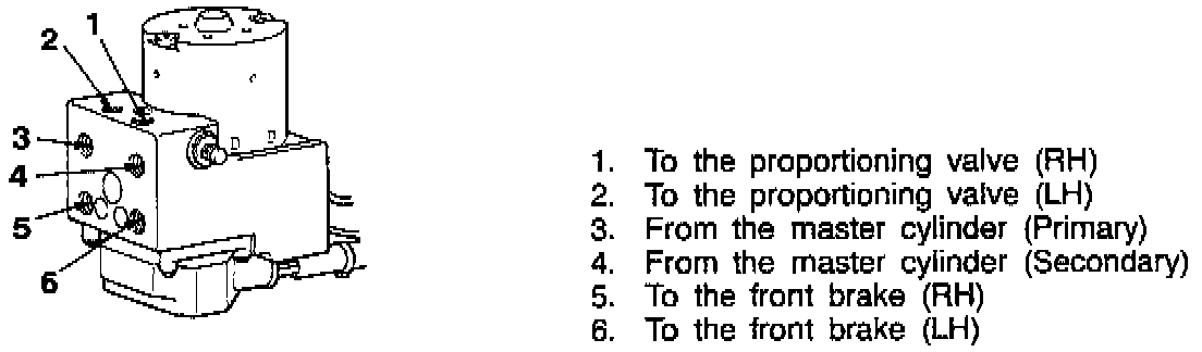 Connect the pipes to the hydraulic unit assembly as shown in the illustration.