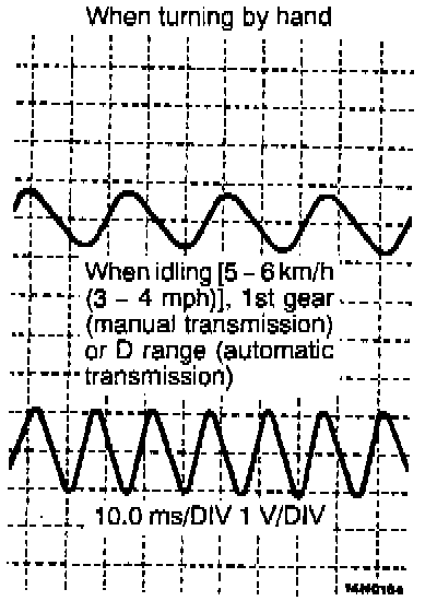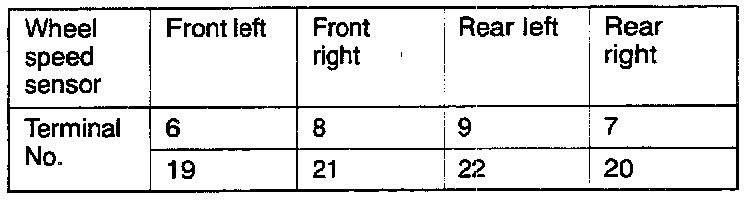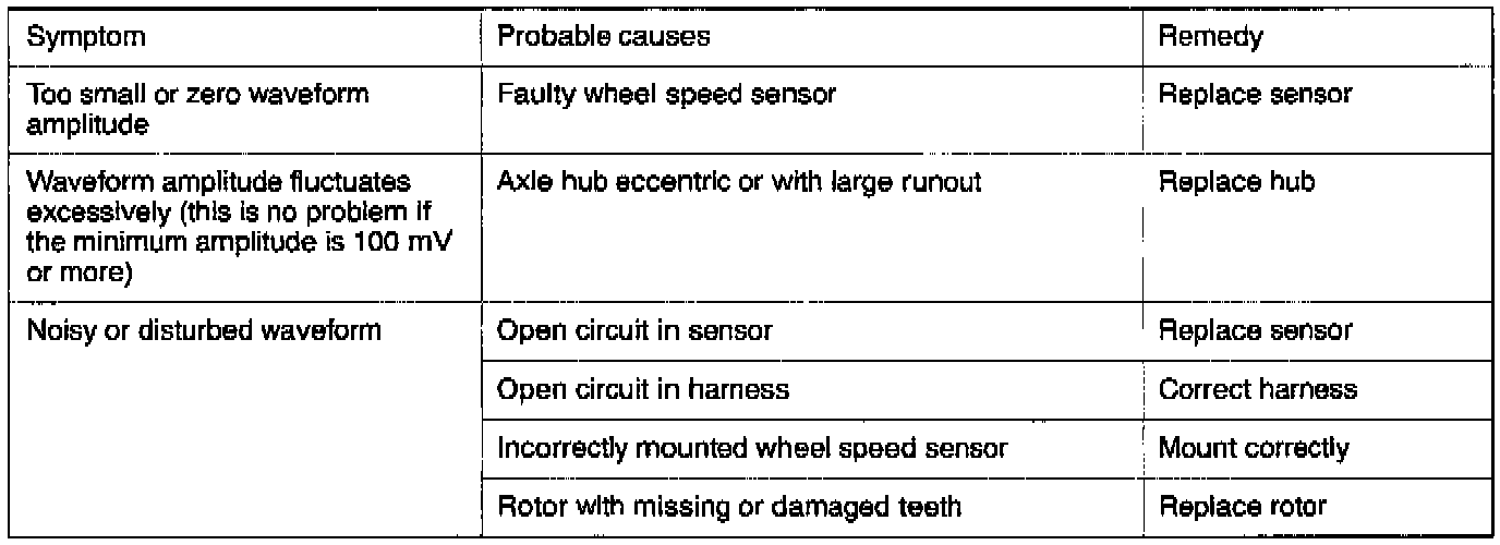 NOTE: The wheel speed sensor cable moves following motion of the front or rear suspension. Therefore, it is likely that it has an open circuit only when driving on rough roads and it functions normally when driving on smooth roads. It is recommended to observe sensor output voltage waveform also under special conditions, such as rough road driving.