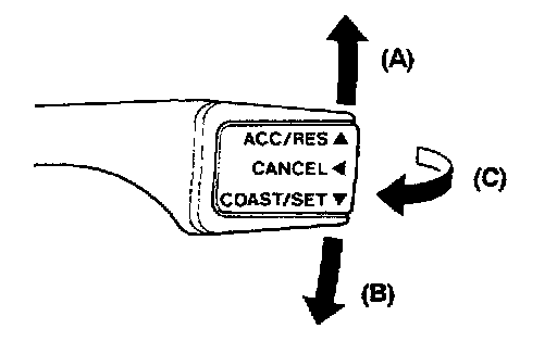 a. The auto-cruise control switch is pushed in the direction of arrow (C).