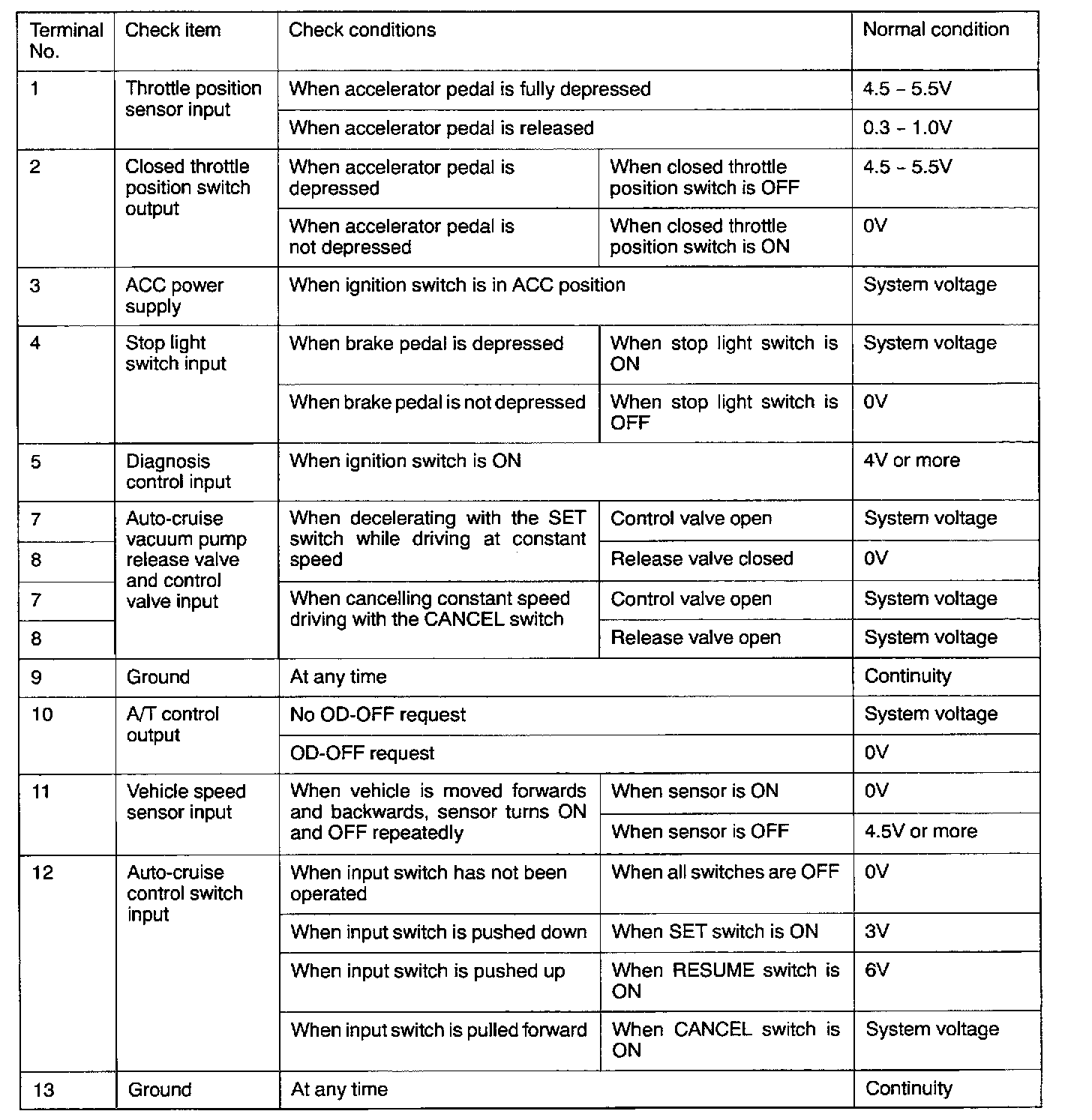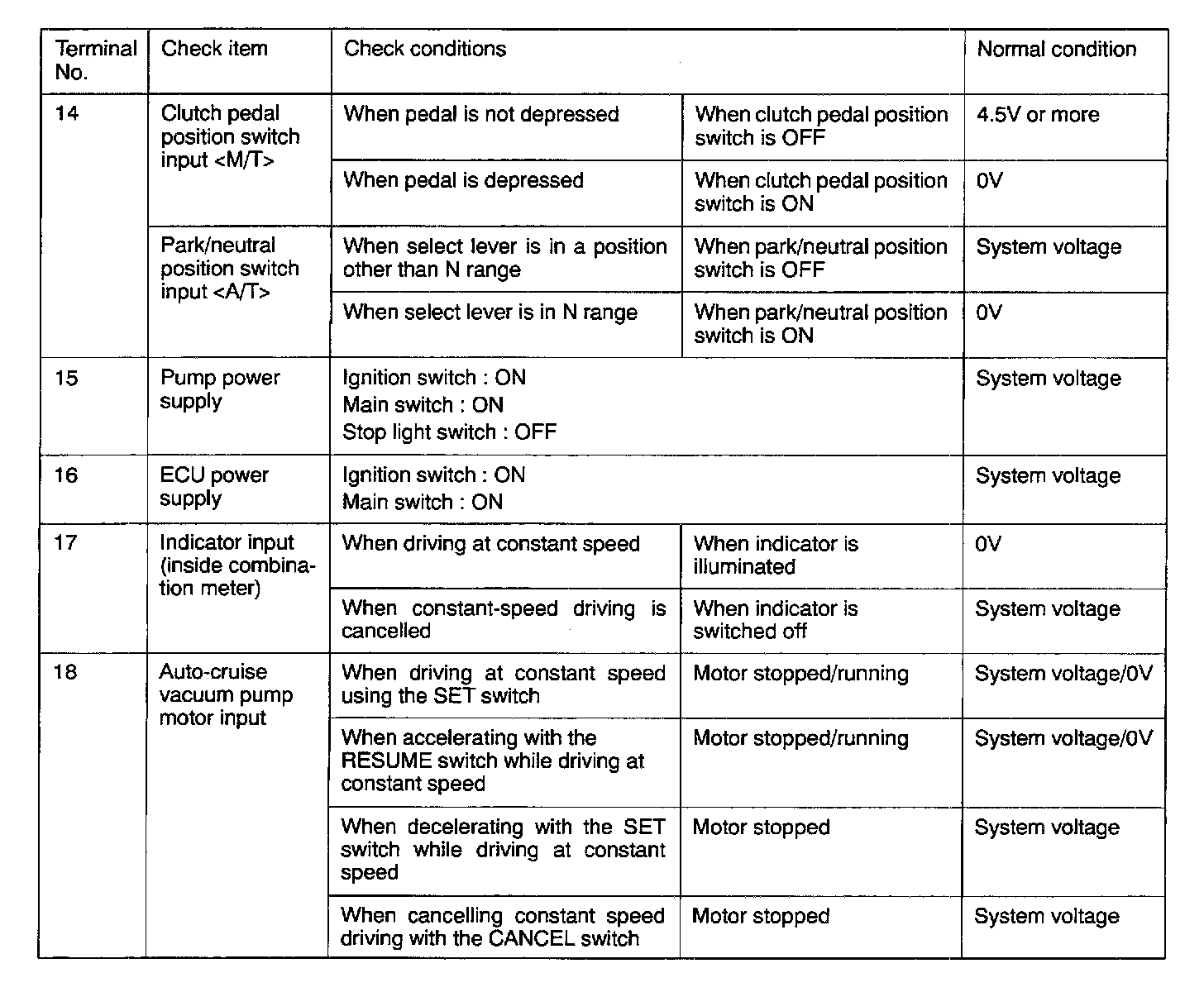 Pinout Values and Diagnostic Parameters