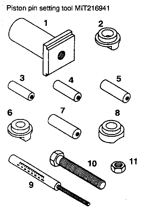 4. Slide the piston pin over the threaded end of the press pin, and thread the correct guide pin up against it.