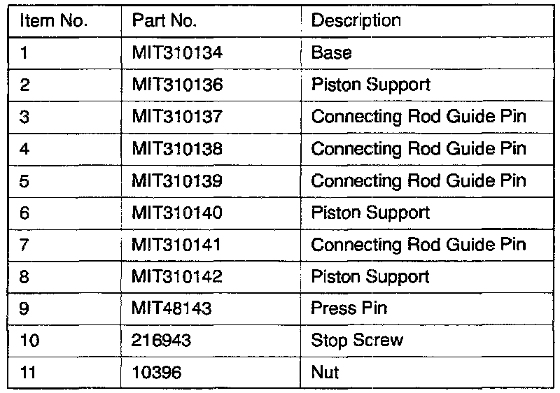 7. Remove the piston assembly from the base. Remove the guide pin and press pin from the assembly.