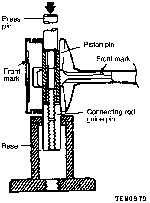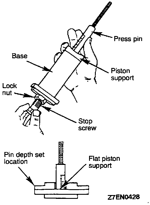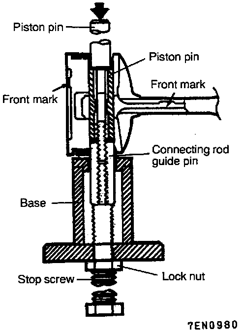 6. Press the piston pin through the connecting rod until the guide pin contacts the stop screw.