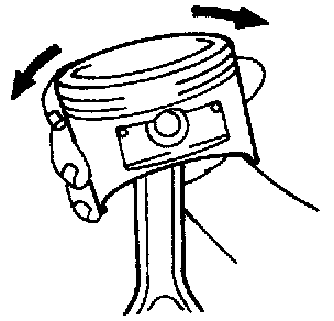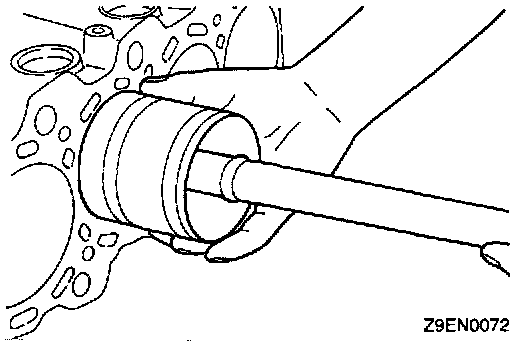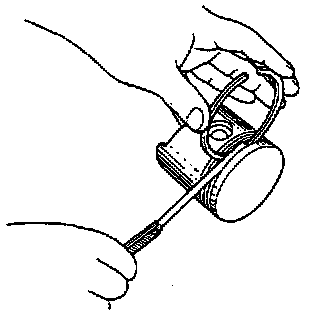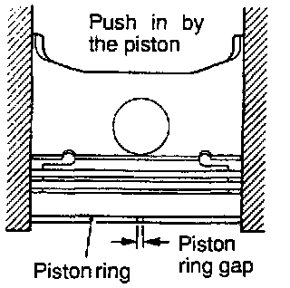 4. Compress the piston rings tightly with a suitable ring compression tool, then press the piston and connecting rod fully into the cylinder. Do not strike the piston hard since the piston rings may break and the crank pin may be nicked.