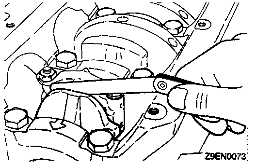 2. When reusing the bearing cap bolt, measure that its shank length dose not exceed the specified limit. Replace the bolt if this measurement exceeds the limit.