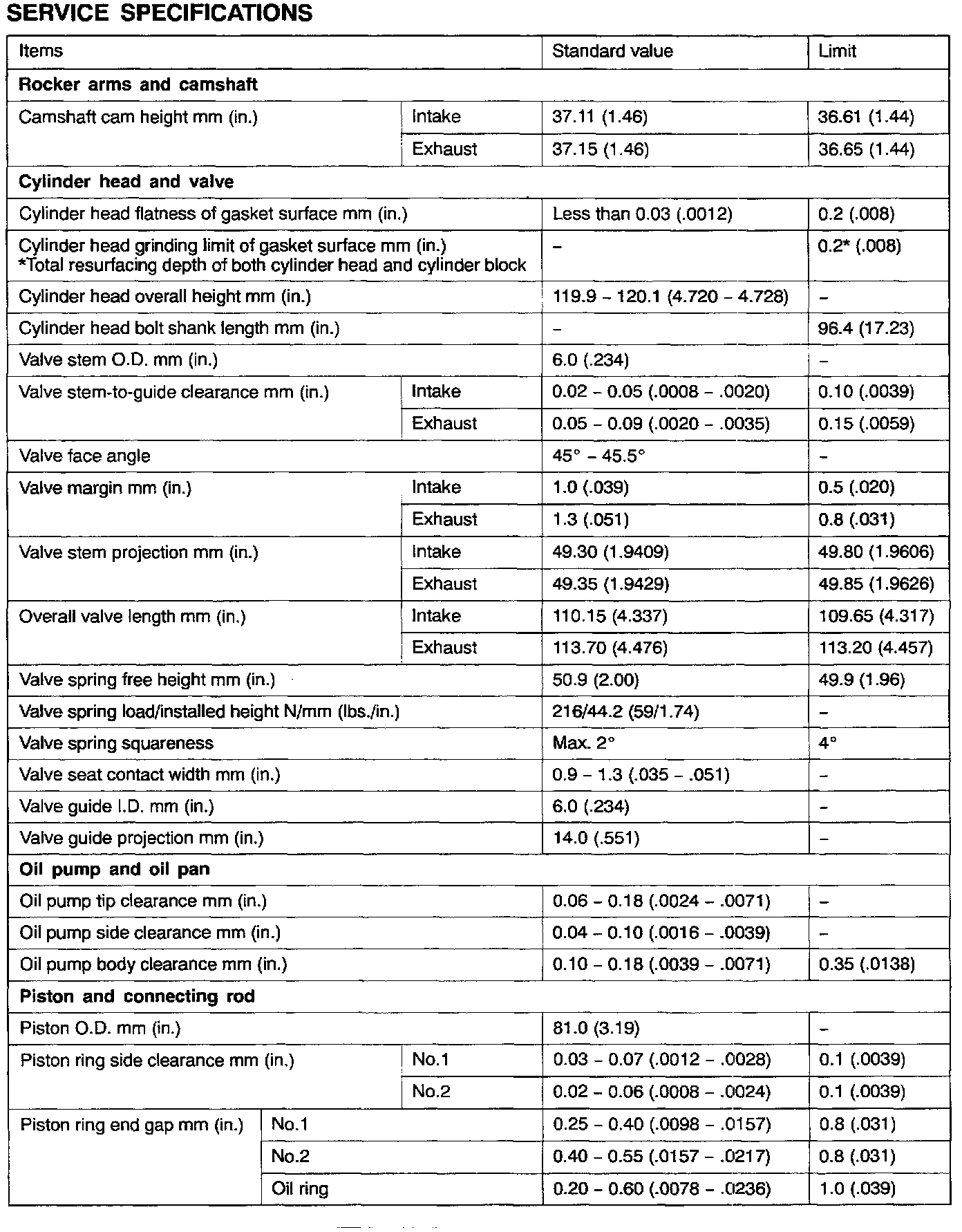 Engine-Overhaul Specifications