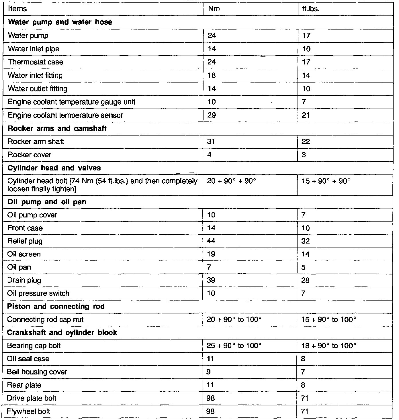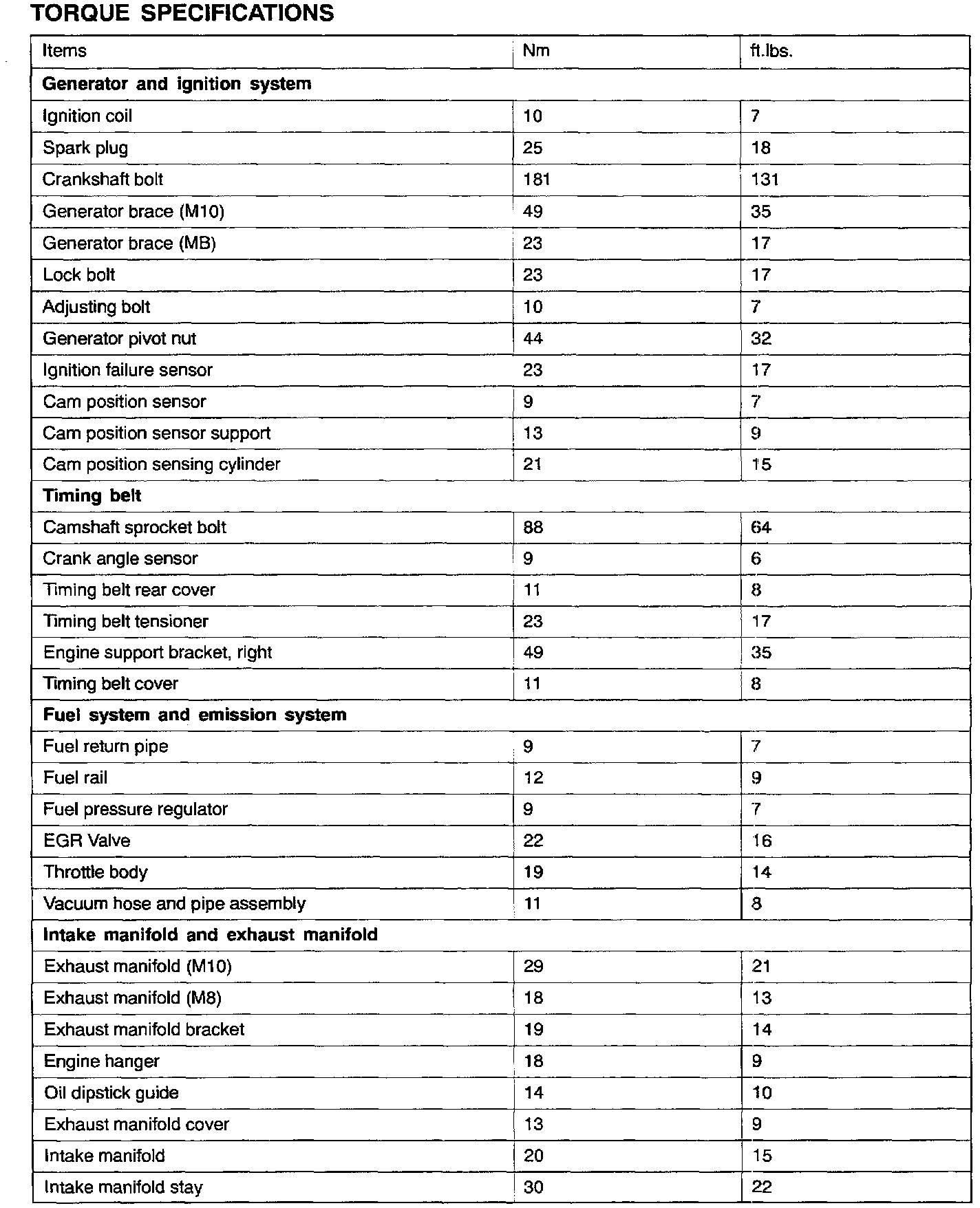 Torque Specifications