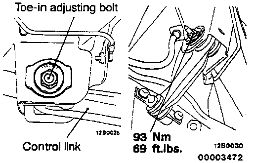 2. Adjust by turning the toe adjusting bolt (mounting bolt on the inside of the control link).