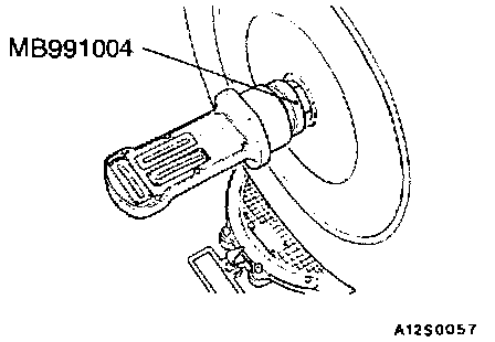 NOTE: For vehicles equipped with aluminum wheels, measure the camber after tightening the special tool (MB991004) to the specified torque 172 Nm (127 ft. lbs.).