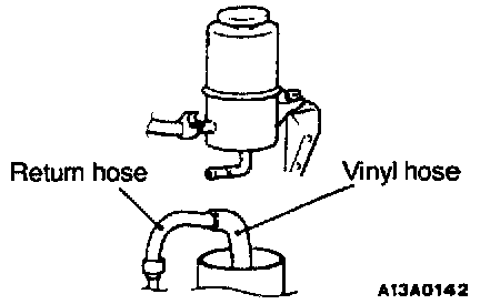 3. Connect a vinyl hose to the return hose, and drain the oil into a container.